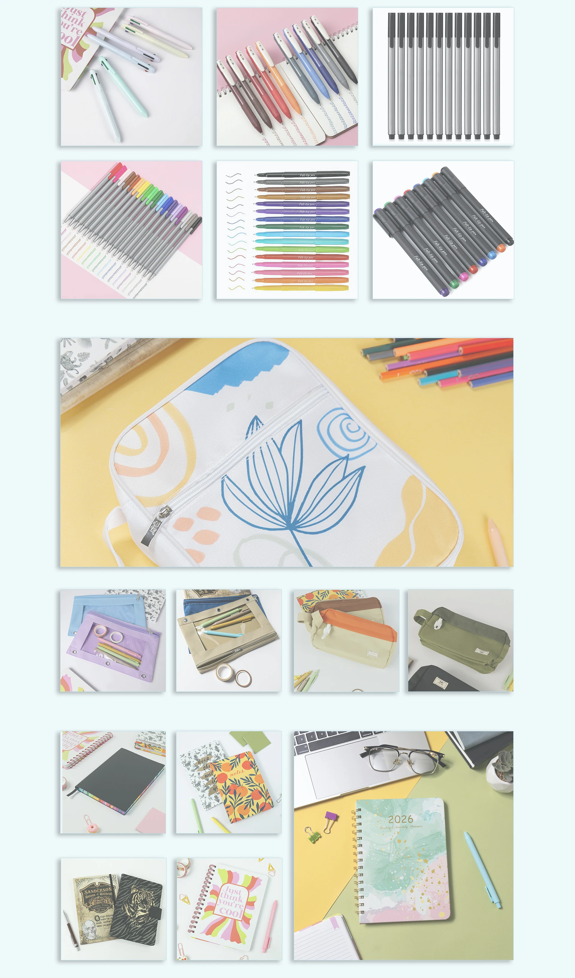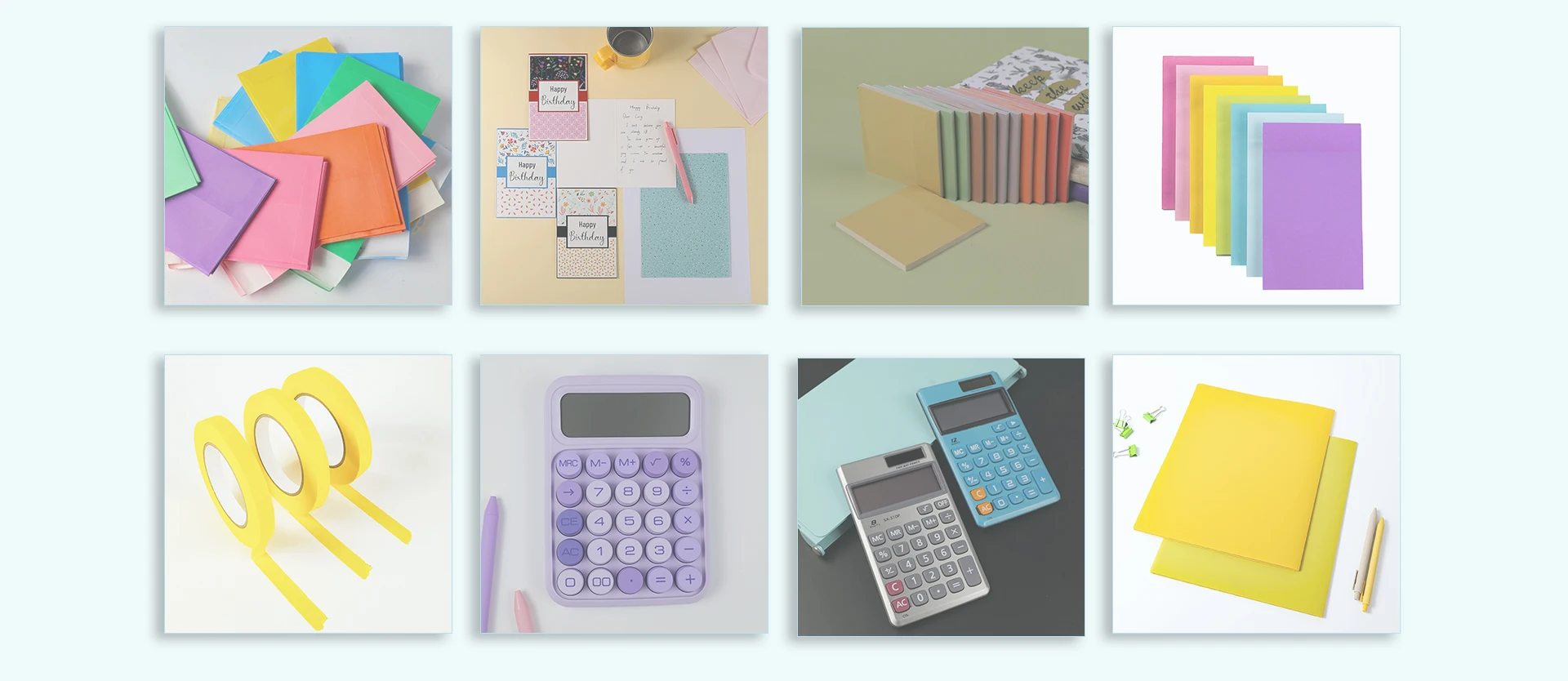 Principaux produits : Calculatrice, stylo, surligneur, note autocollante, taille-crayon
